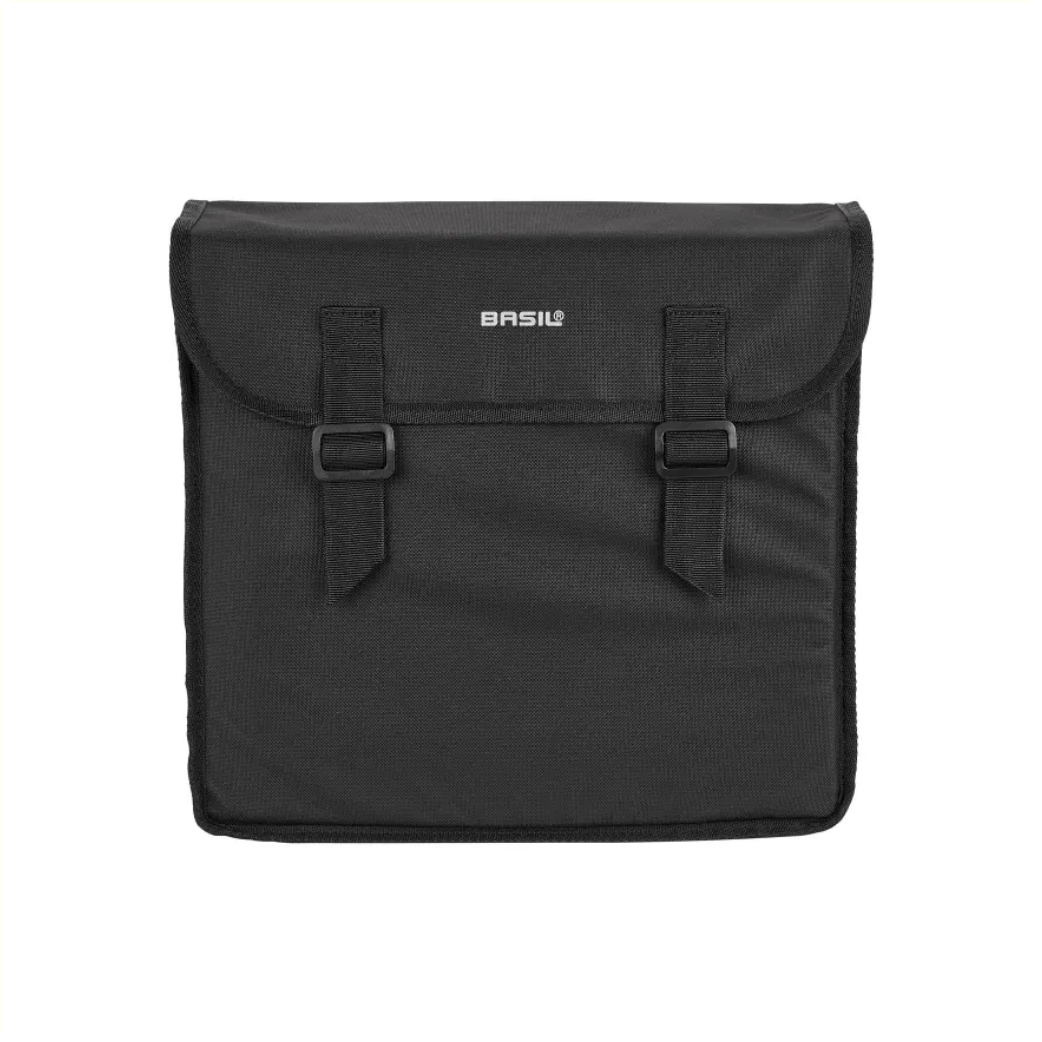 The Basil Mara is a double bicycle bag in a black version. This stylish bicycle bag is suitable for mounting on the luggage carrier of a women's or men's bicycle.