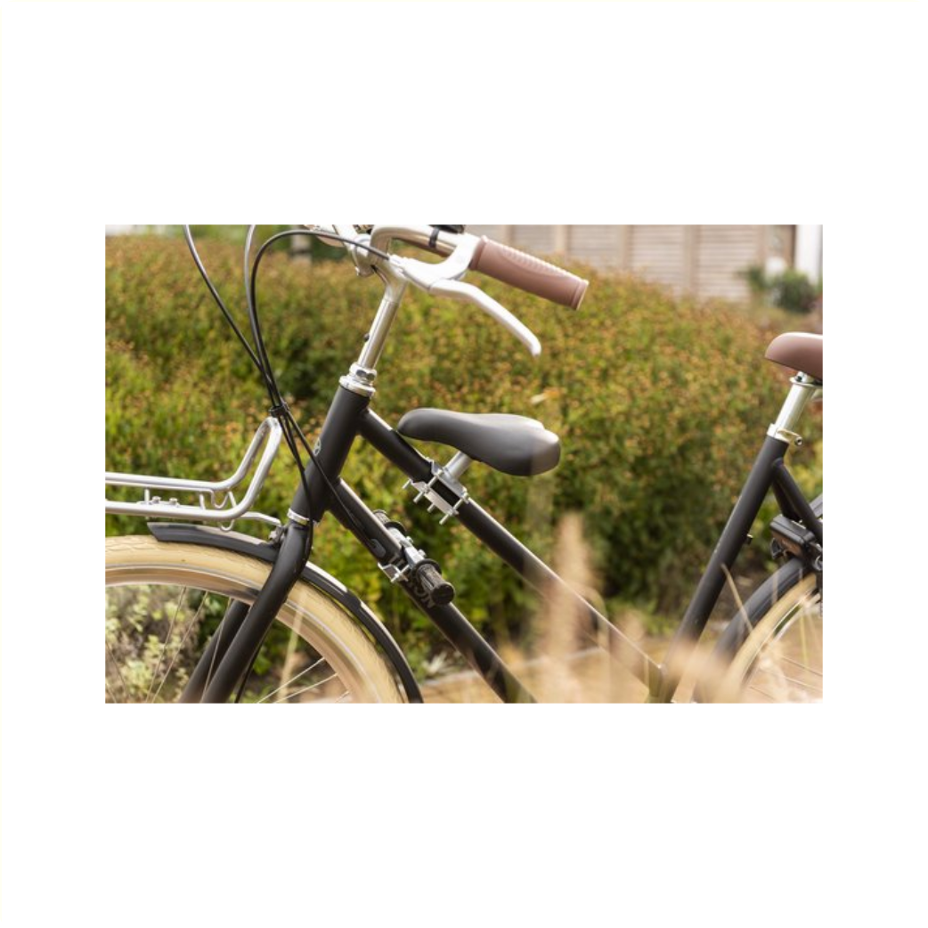 The foot rest, footrest, is specially designed for your child who sits on the front of a children's saddle (between the handlebars and your saddle) and places their feet on this support. This footrest provides comfort for your child and makes cycling safer. We supply three clamps as standard, so that the footrest can be mounted on any type of frame.