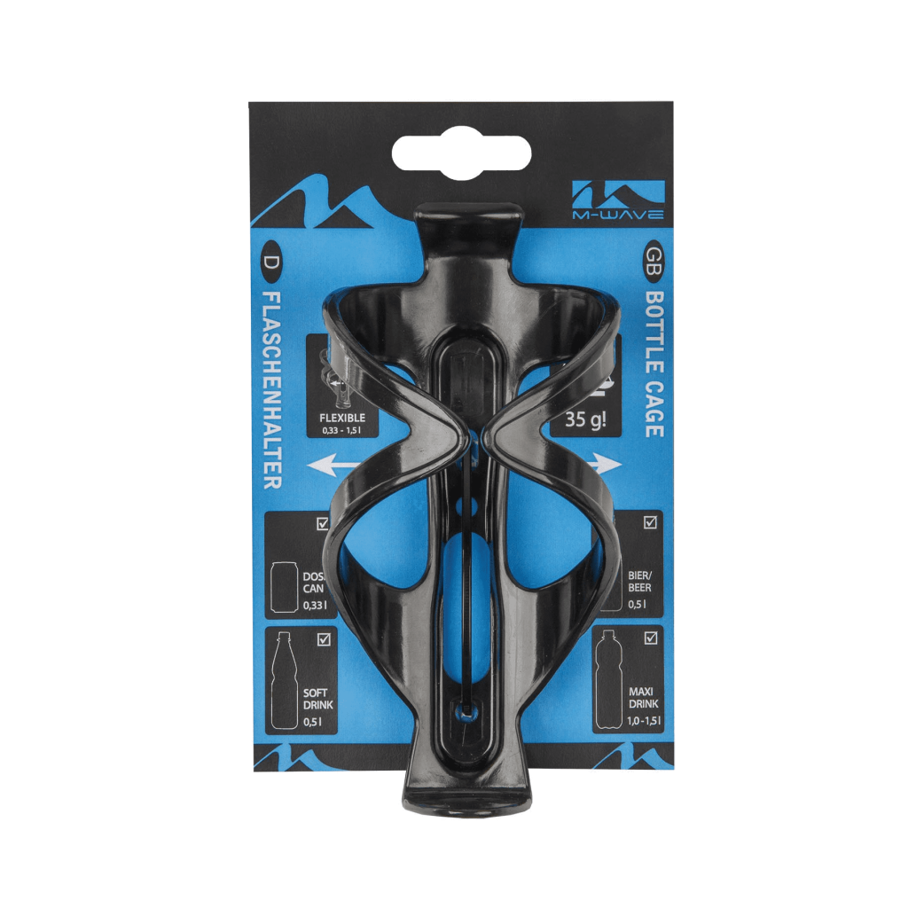 M-wave Bottle Cage • black • This bottle cage is very flexible and can hold various sizes of bottles and bottles, from 0.33l to 1.5L.