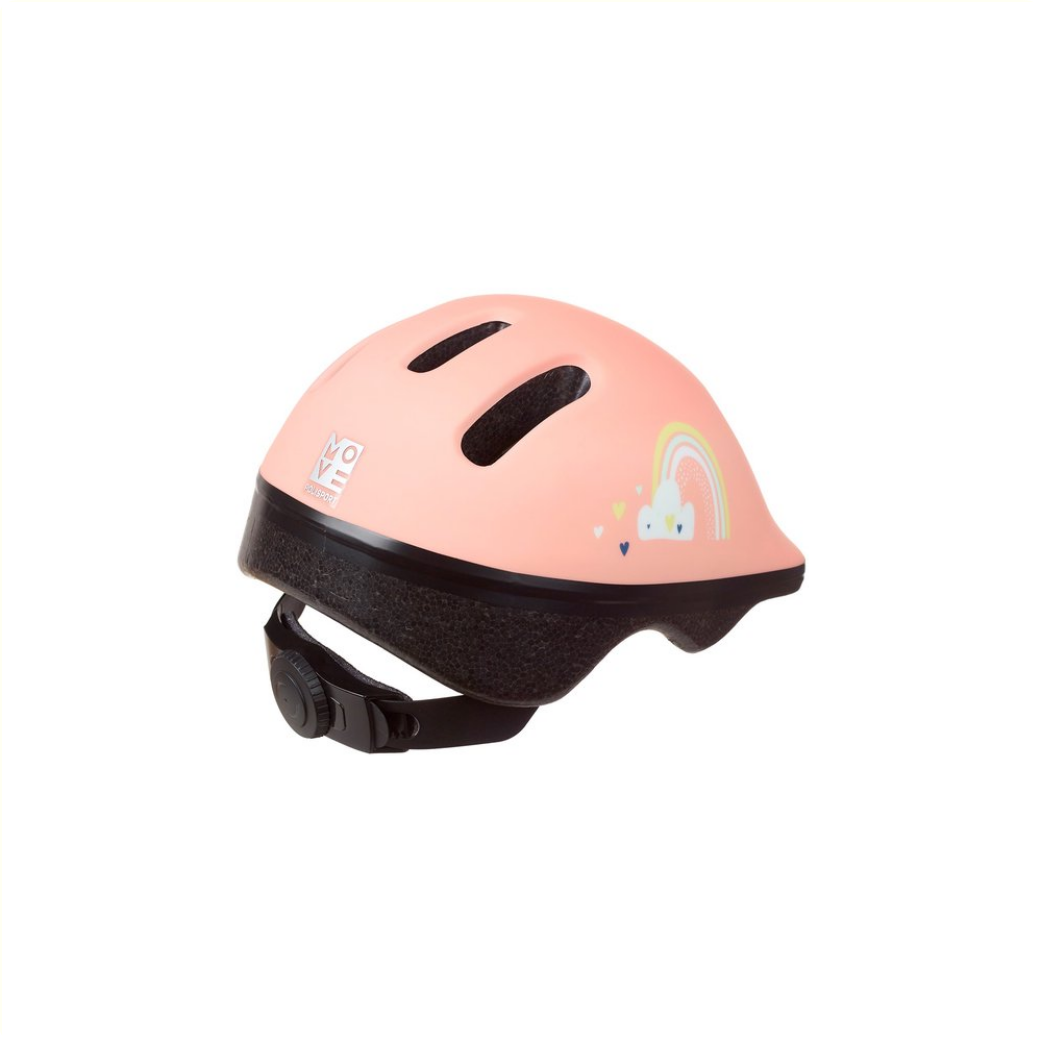 • Number of ventilation holes: 6 • Adjustment system • Insect net • Inner cushions Designed to protect babies' heads (from 9 months to 3 years) • Construction: Glue-on • Can also be used on tricycles and exercise bikes. • Weight: 90g | 0.42 lb • Dimensions: 44-48 cm • EN 1078 approved
