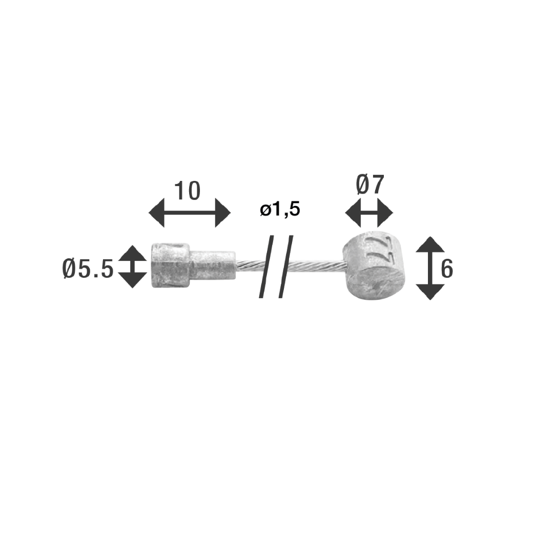 Ø 1,5mm met 2 nippel 7x6mm en 5.5x10