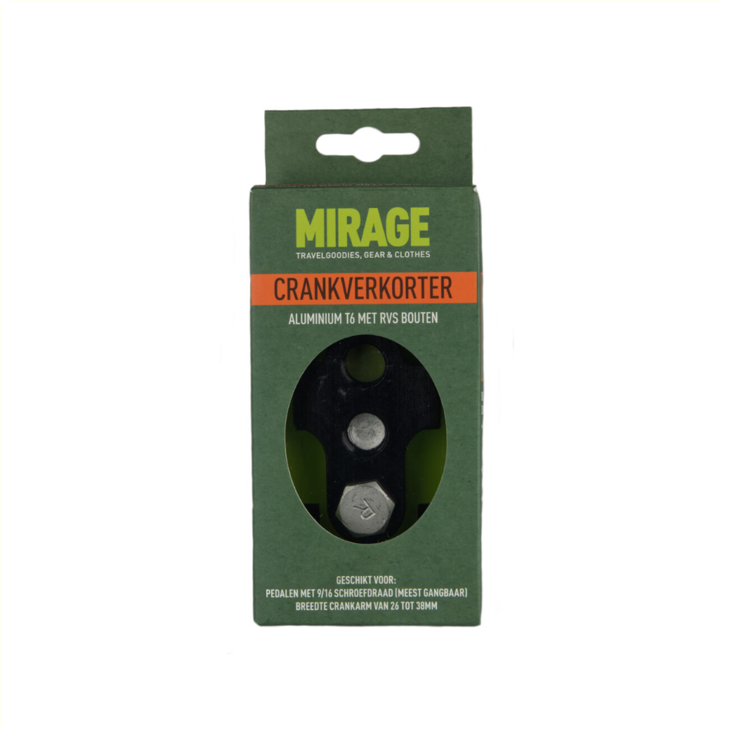 Mirage crank shortener aluminium T6 • including stainless steel bolts • black • The set contains 2 aluminium crank shorteners (left and right) • Suitable for pedals with 9/16 thread (most common)