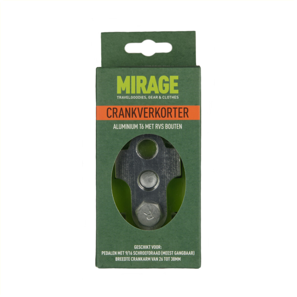 Mirage crank shortener aluminum T6, including stainless steel bolts, silver
