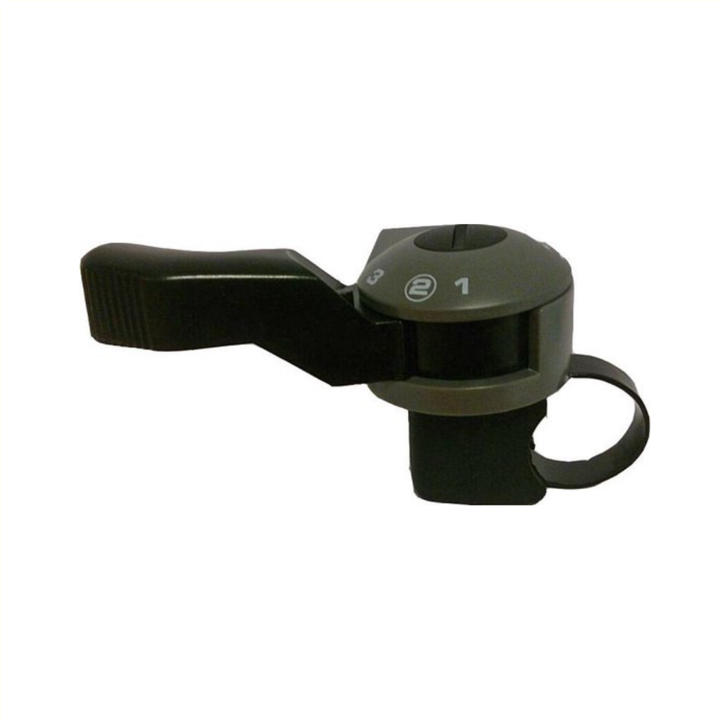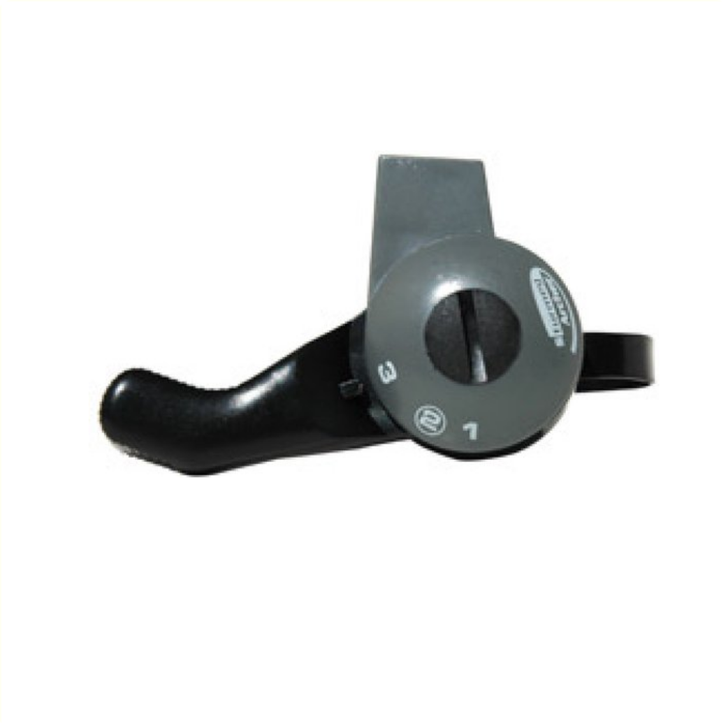 Sturmey Archer Thumb Shifter HSJ823 Nimbus. • Right thumb shifter • Suitable for 3 gears • For mounting on the handlebars • Suitable for handlebars with a tube diameter of 22.2 mm. • Material: Plastic • Weight: 52 grams • Colour: Grey / Black