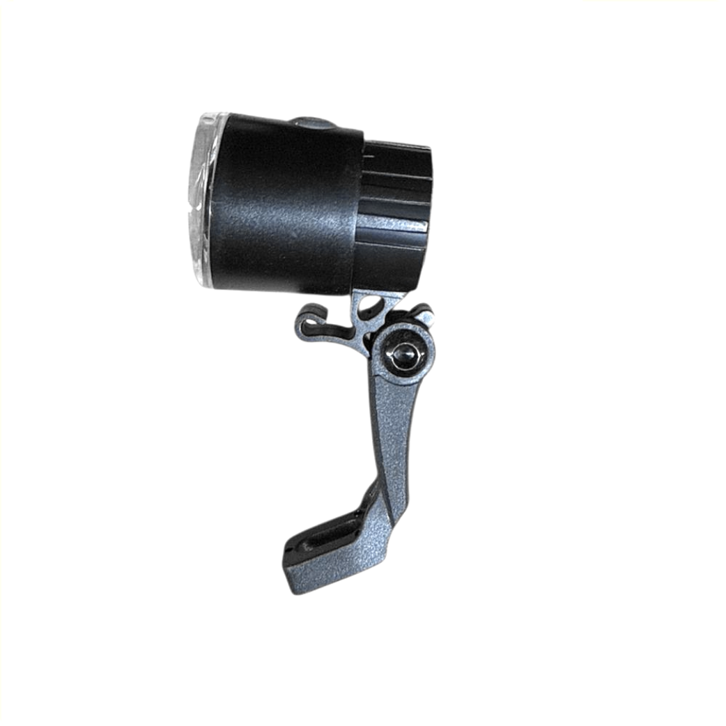 The FALKX Small (also known under item number BI0906A) proves that good lighting doesn't have to be big. This mini headlight is equipped with a single, super-bright LED that provides a sharp beam, ensuring you are highly visible in traffic. Thanks to its compact design of only 4.5 cm deep, the lamp takes up hardly any space on your bike, while the included steel bracket ensures stable mounting on the front fork. Because the lamp is battery-operated, you always have light, even when stopped at a traffic light.