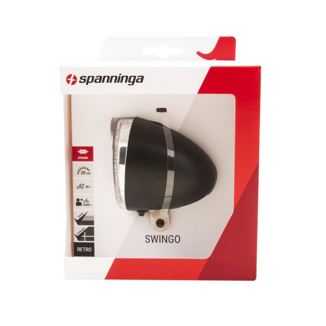 The Swingo Xb chrome is the big brother of the Spanninga Trendo and perfect for retro bikes! The headlight has a light output of 4 lux and is equipped with an integrated reflector and an on/off switch at the bottom. Comes with 3 x AAA batteries (battery on/off) on Spanning card.