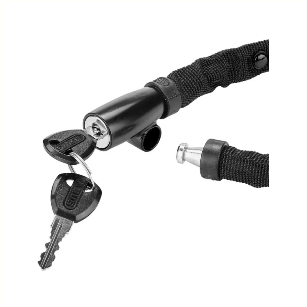 Abus Web chain lock 1200/110 Black •4 mm chain with textile cover to prevent damage to the frame •The chain and the lock housing are made of special steel •Security level 3