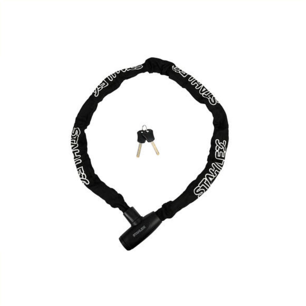 • Kette aus hochwertigem gehärtetem Stahl • Mit robuster Nylonhülle • Inklusive Sicherheitsschlüssel