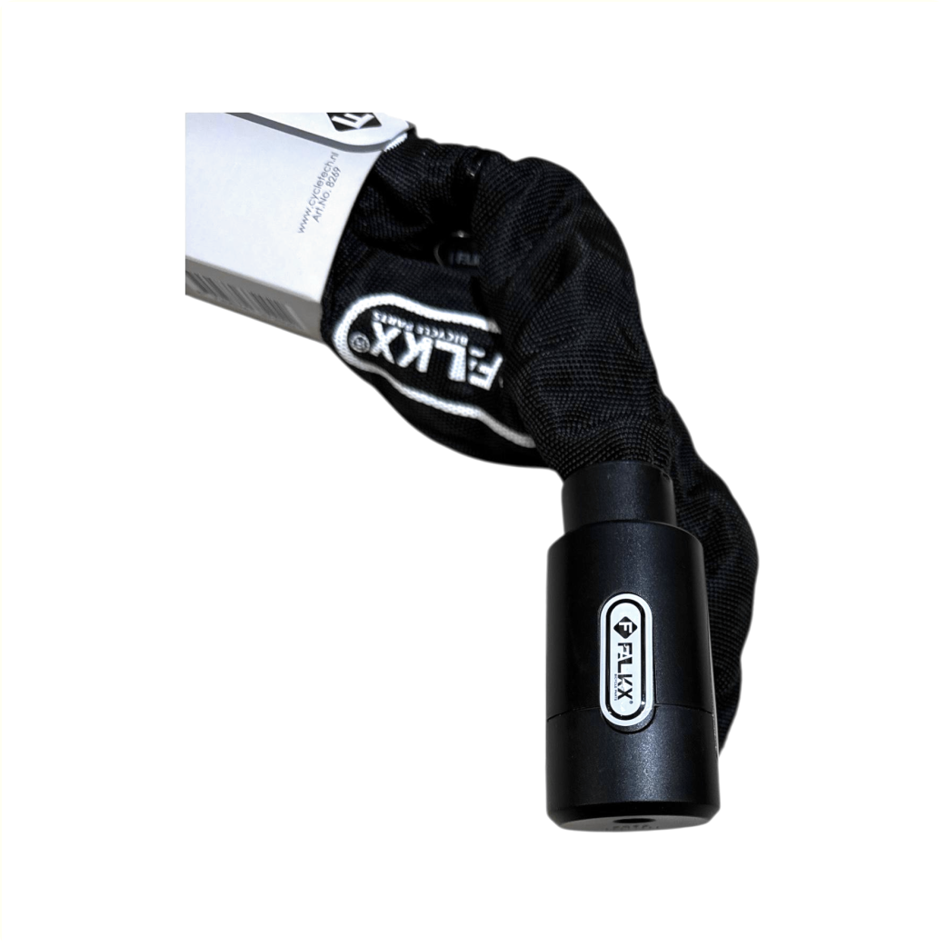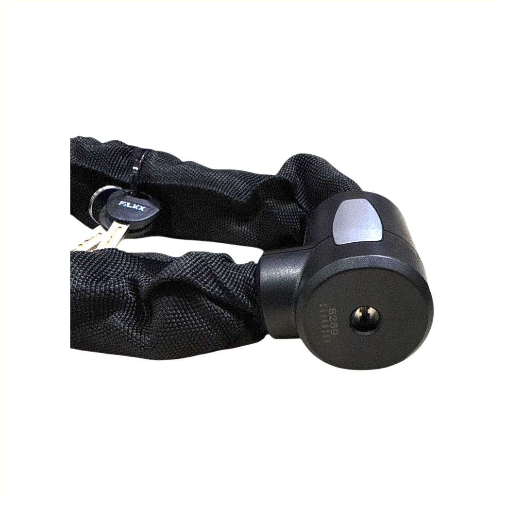 Protective textile cover: The chain is encased in a strong, black nylon cover. This not only protects the chain from the elements but also prevents scratches on your bike's paintwork.