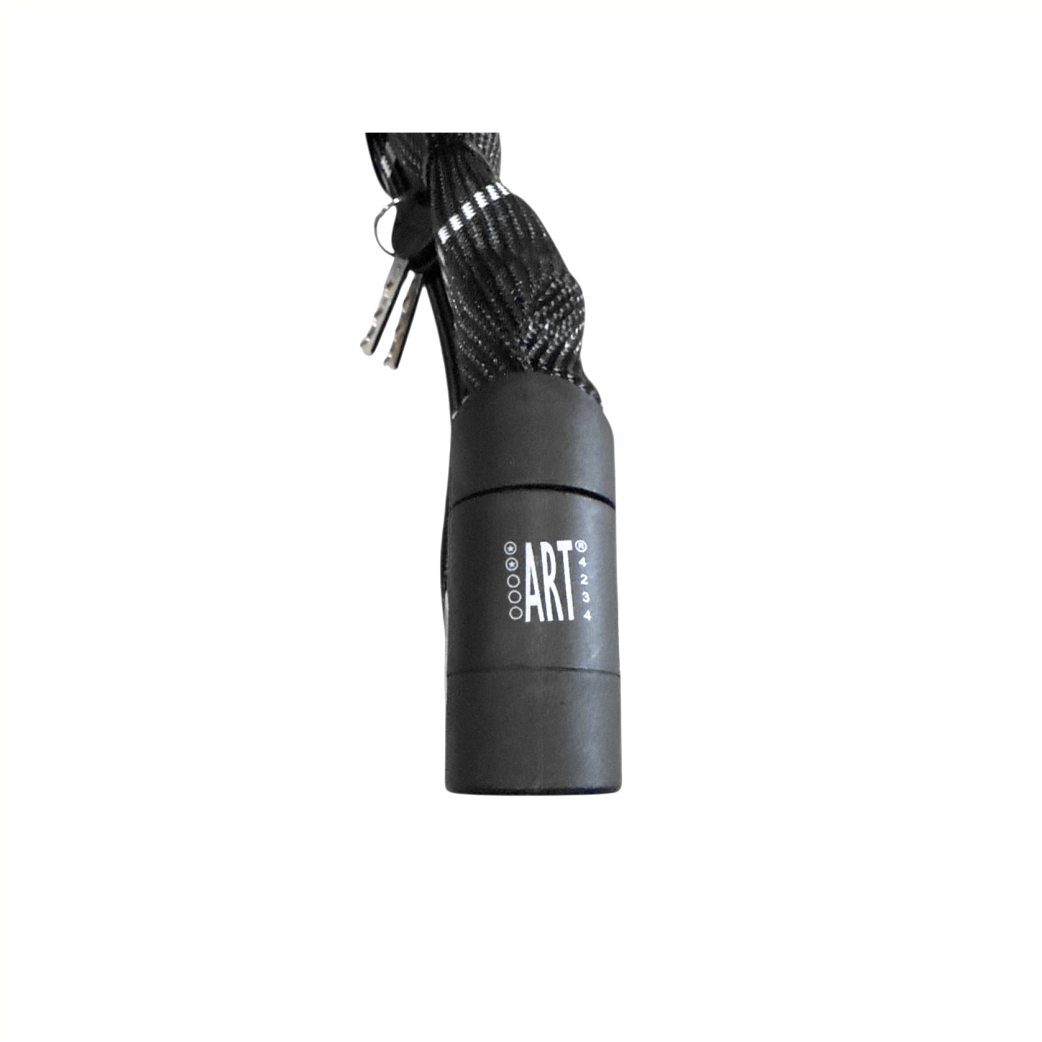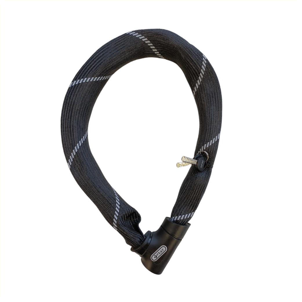 Maniabilité optimale : La longueur de 90 cm est la taille idéale : une portée suffisante pour la plupart des situations, sans le poids supplémentaire d’une chaîne extrêmement longue. Gaine textile de protection : La chaîne est entièrement recouverte d’une gaine en nylon noir résistant. Cela empêche la chaîne de rayer la peinture de votre cadre et protège l'acier des intempéries.