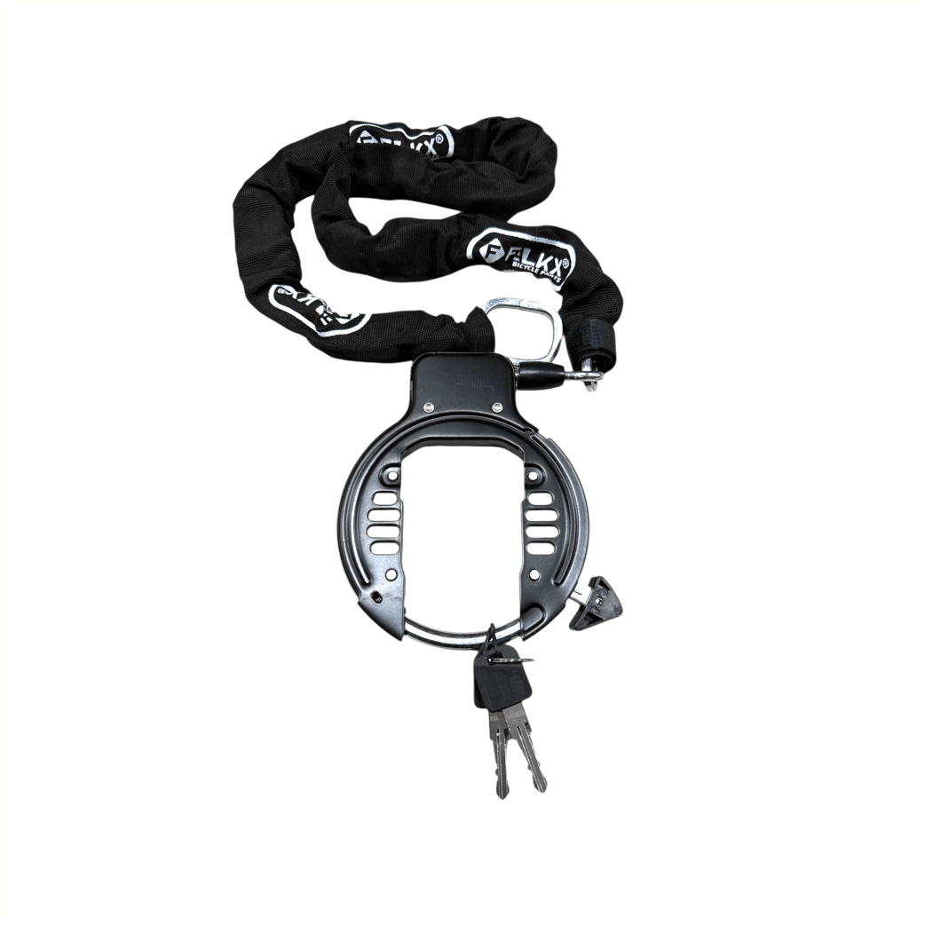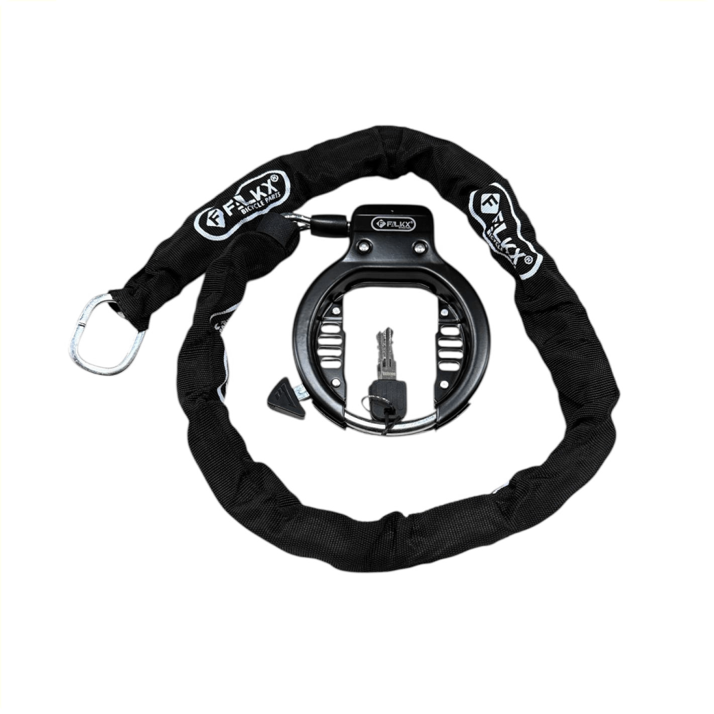 Are you looking for complete and unbeatable security for your bike? The FALKX Strong Basterd set offers the perfect combination of a robust ring lock and a powerful plug-in chain, so you can leave your bike anywhere with peace of mind.