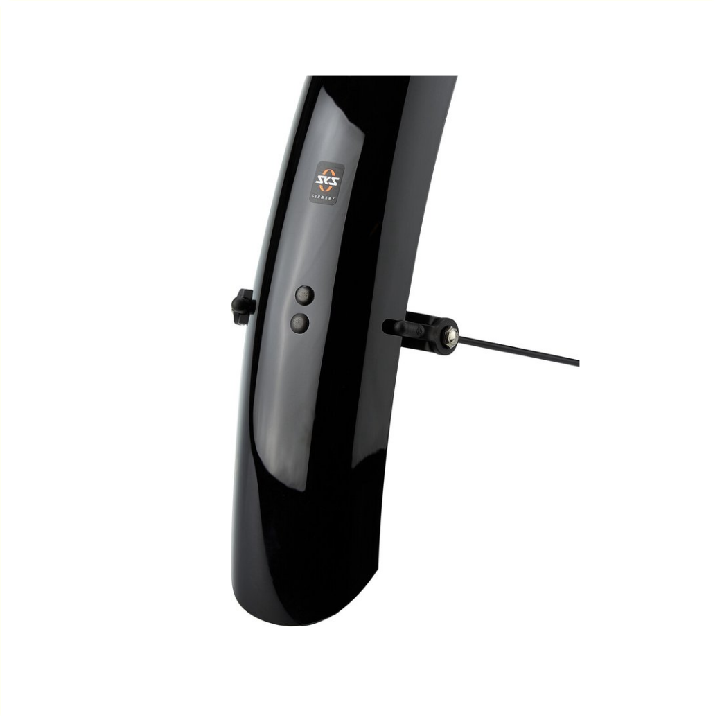 A real top performance! The SKS mudguard set BLUEMELS BASIC not only integrates perfectly with the bicycle, but also reliably protects against dirt and splash water. Thanks to the flexible sandwich construction, in which thin aluminum strips are embedded in a plastic coating, the fenders are extremely robust, rigid and protected against corrosion.