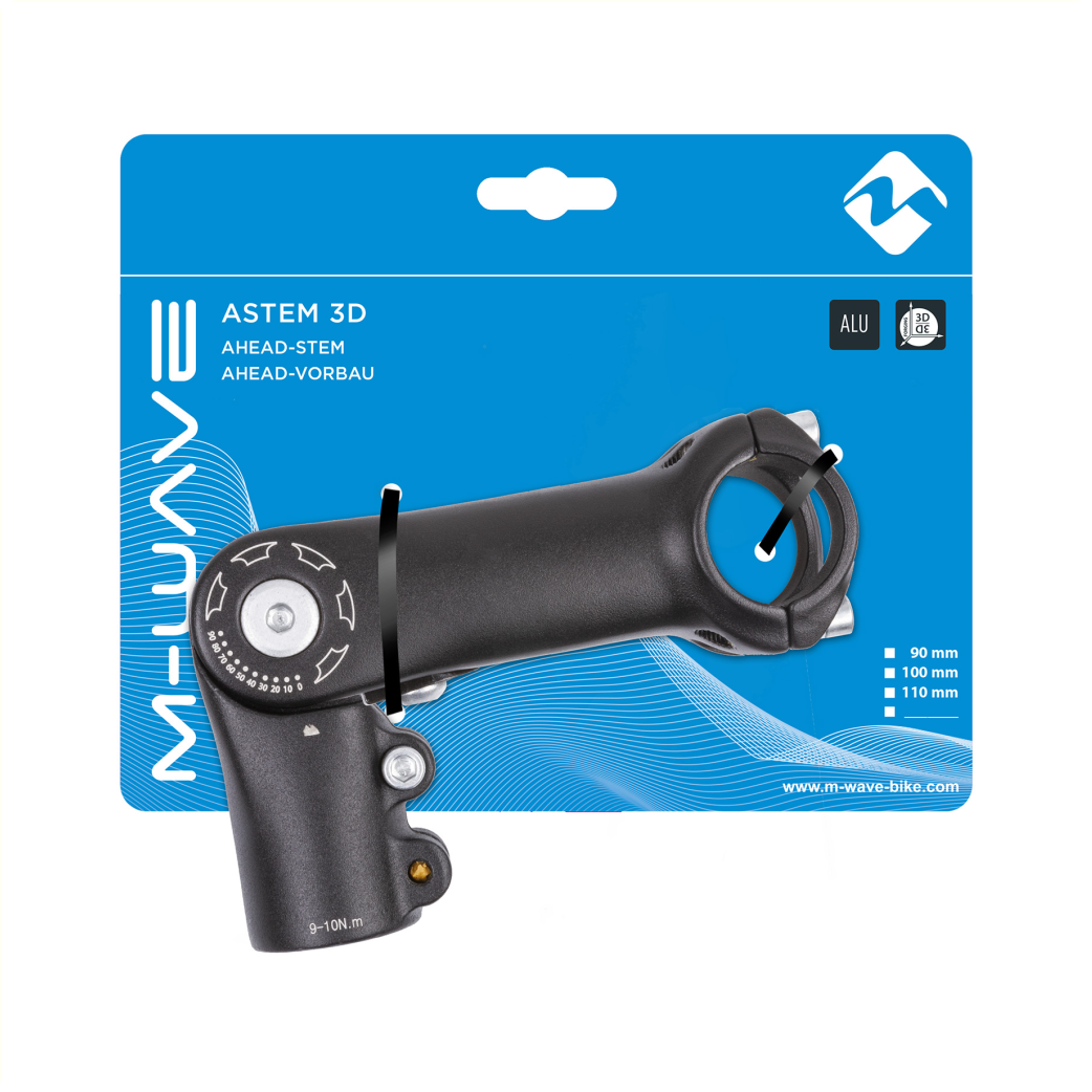 M-Wave A-head stem 1 1/8, adjustable. Handlebar diameter 31.8mm, length 90mm