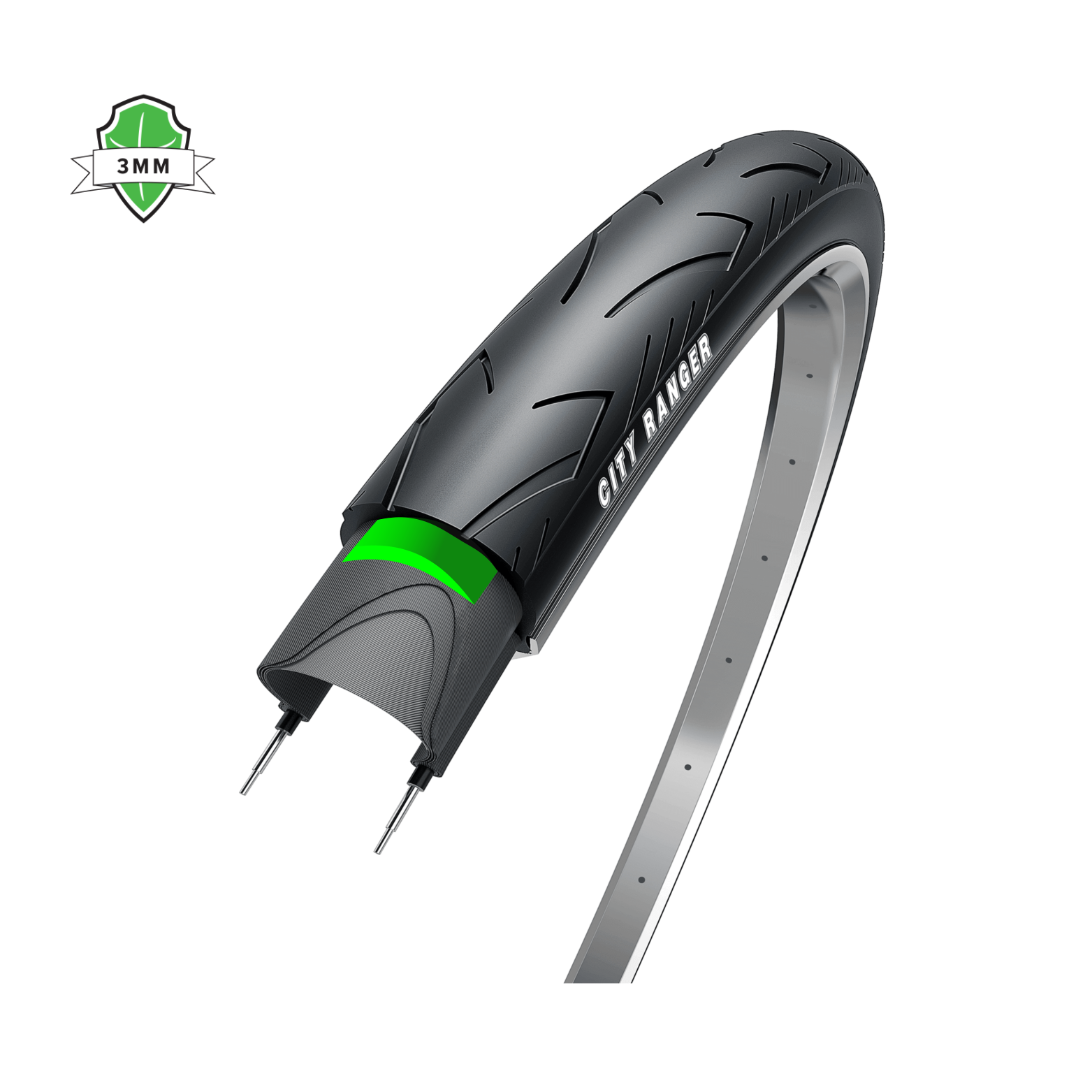 Key features of Obor/Hakuba City Ranger, black with reflection, 28x1 5/8x 13/8, ETRTO 37-622 3mm anti-puncture layer