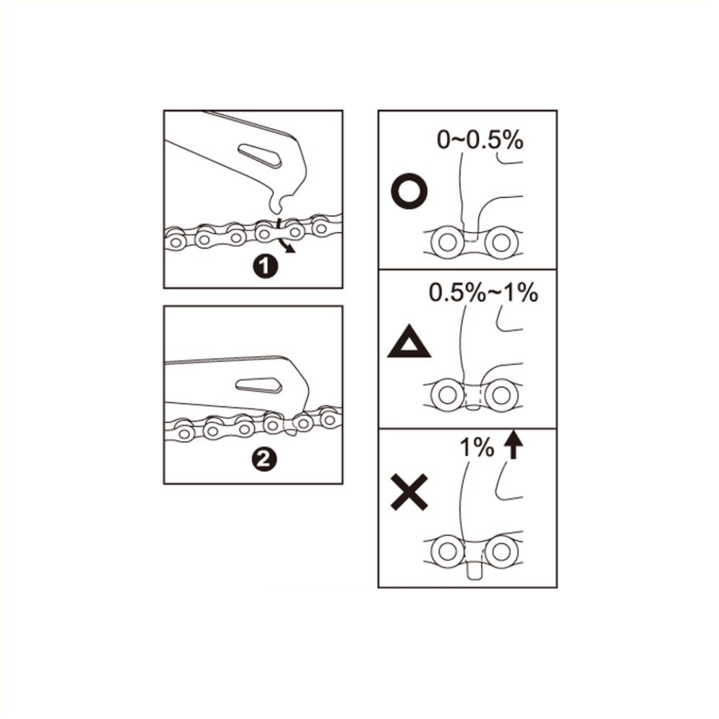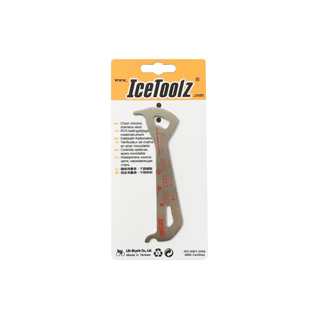 • This handy chain wear gauge from IceToolz shows when the chain needs replacing.